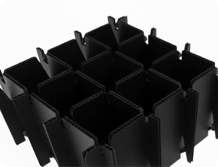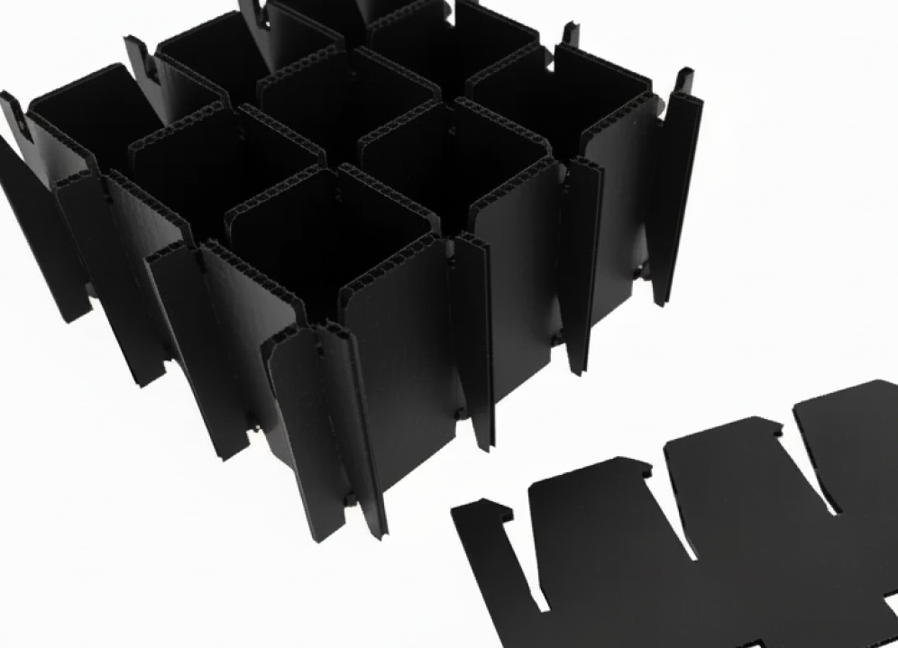 Wir fertigen Gefache aus PP-Hohlkammerplatten in der Stärke von 3 mm und flachliegend geliefert